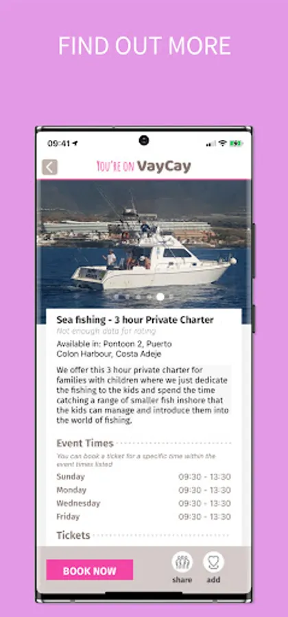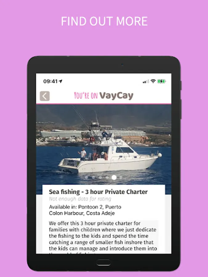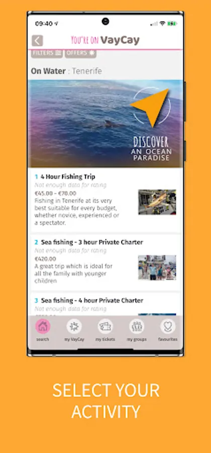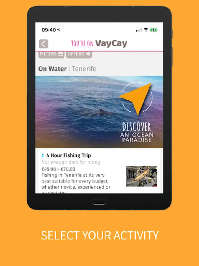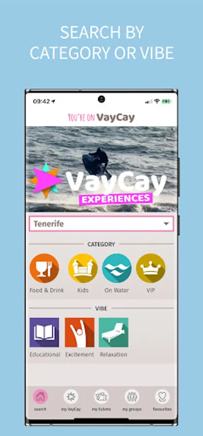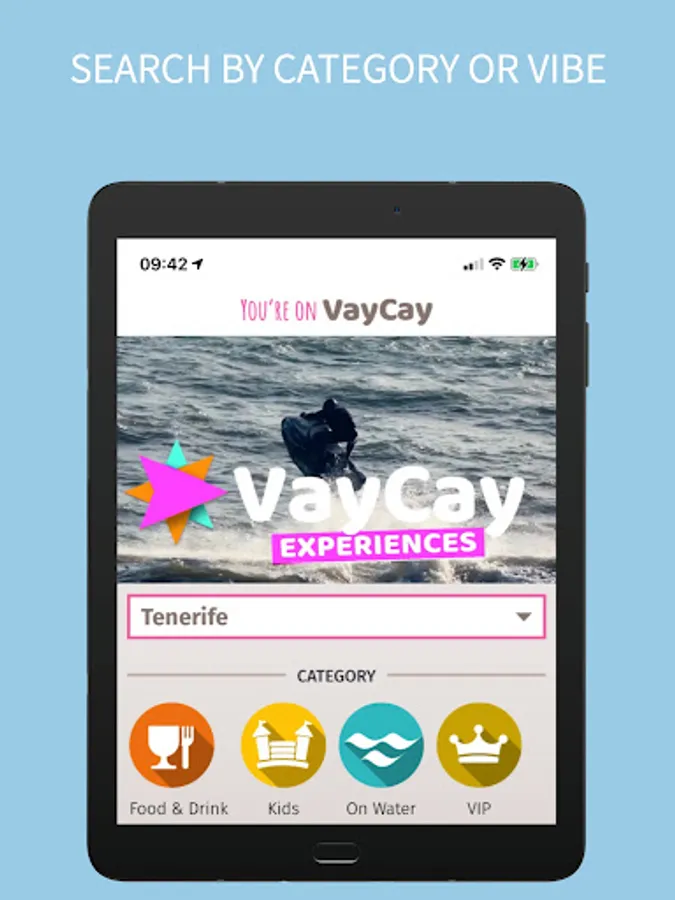VayCay helps you find fun stuff to do on vacation - all at the best possible prices. VayCay lets you search for things to do in your holiday resort by category, such as on water, in the air, on wheels, etc, or by vibe, such as excitement, relaxation, active, etc.