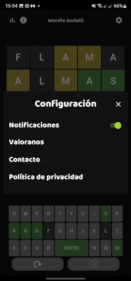 Download Wordle Andalú now and start enjoying our wealth in the form of words every day.