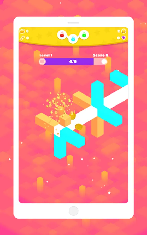 -As you move through the dazzling color pool with your character, tap the screen once to switch between the colorful twigs that have the same color as your character, flip all twigs and keep moving forward.