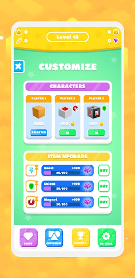-You can collect gold, diamonds and chest keys around you to buy different characters or get great rewards.