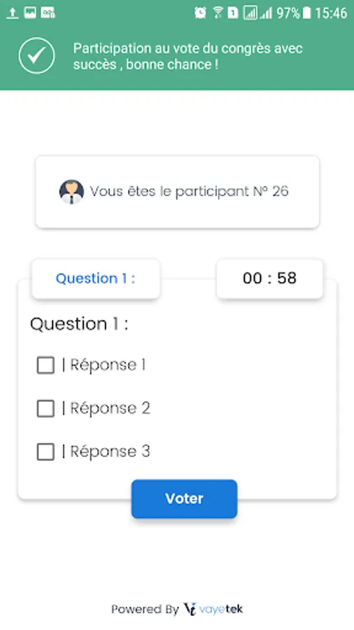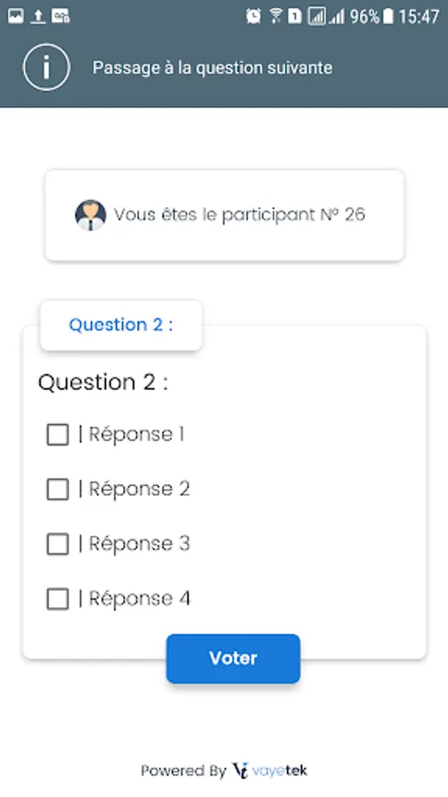 VayeVoting is an application that allows the user to attach a vote during a congress, training, meetings etc ...