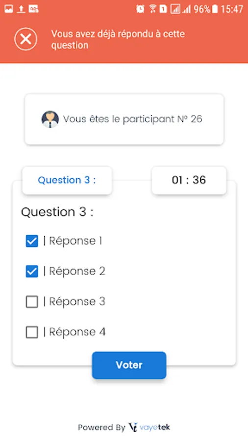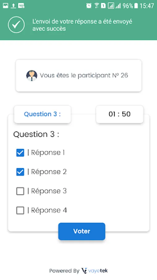 VayeVoting is a real-time application, allows a response to single or multiple choice.