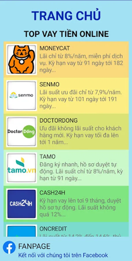 - Loan amount: 1,000,000 - 20,000,000 VND