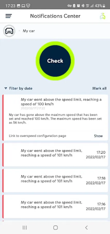 You can personalize your experience by selecting which notifications you want to receive. You can add multiple cars within your Drivey account, and you can choose to share statistics of one of your cars with other users with no extra costs.