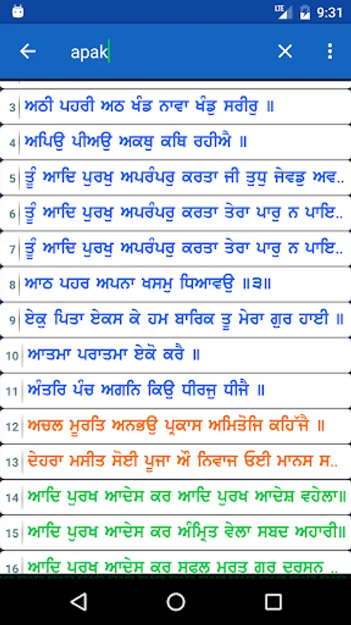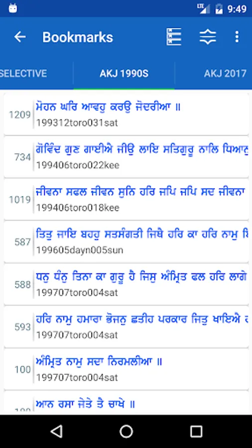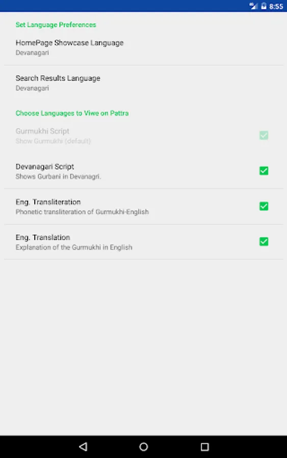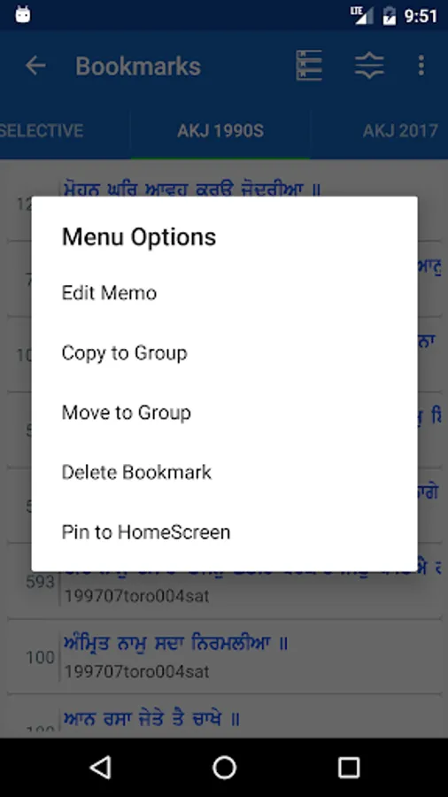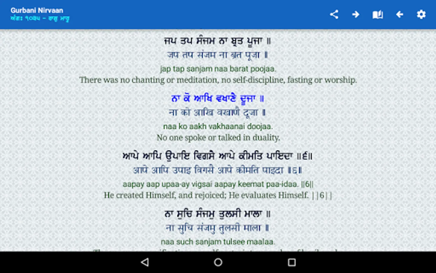 • Select read options from Gurmukhi, Hindi, Phonetic and English translations.
