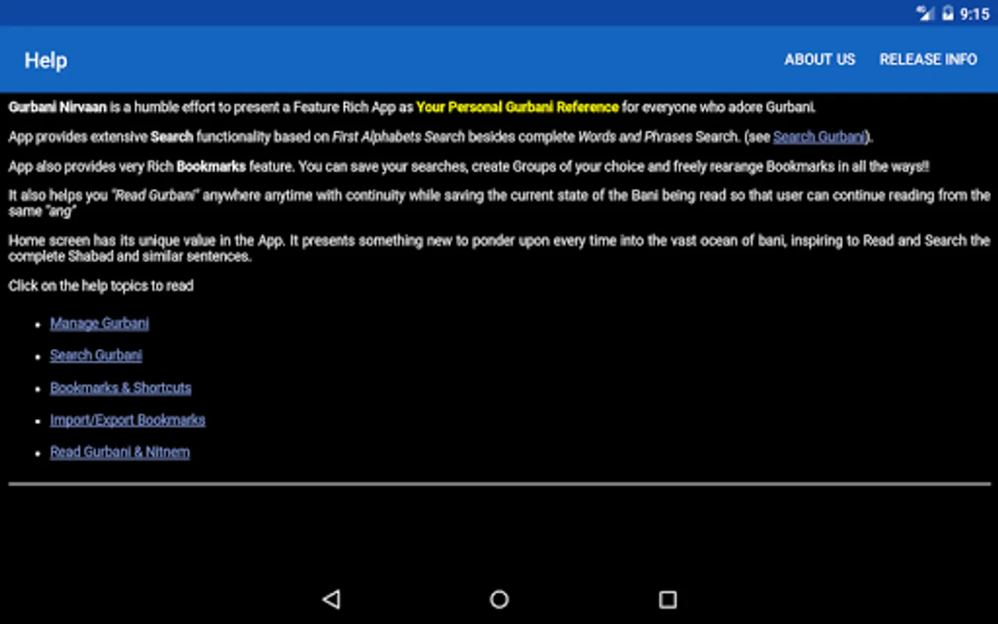 Gurbani Nirvaan is a humble effort to present a Complete Gurbani Reference with extensive Gurbani Search and Bookmarks for those who Adore Gurbani.