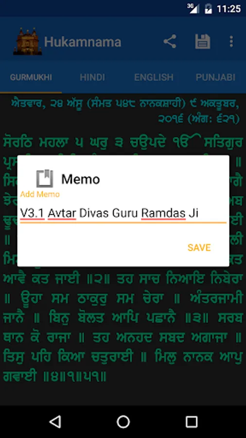● Save Hukamnama with memories of auspicious dates of personal, religious, and social significance.