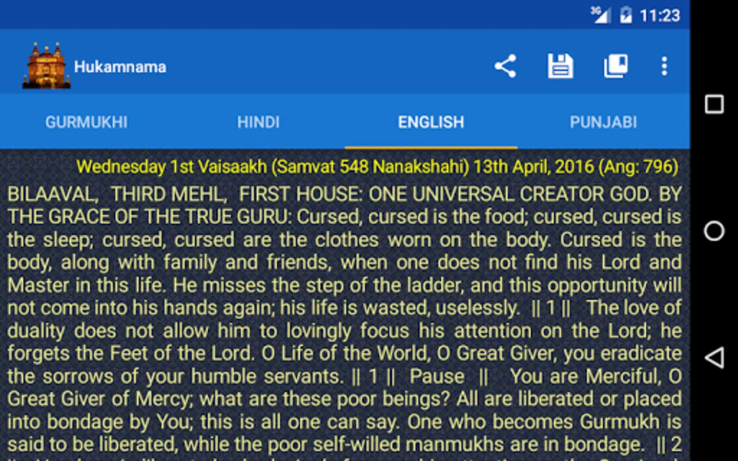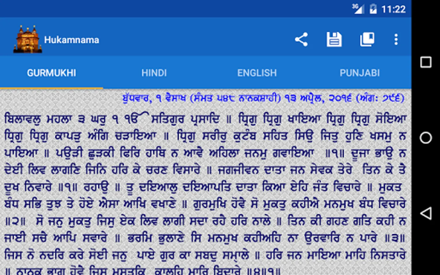 ● Receives Daily Hukamnama when the app is opened for the first time every day.
