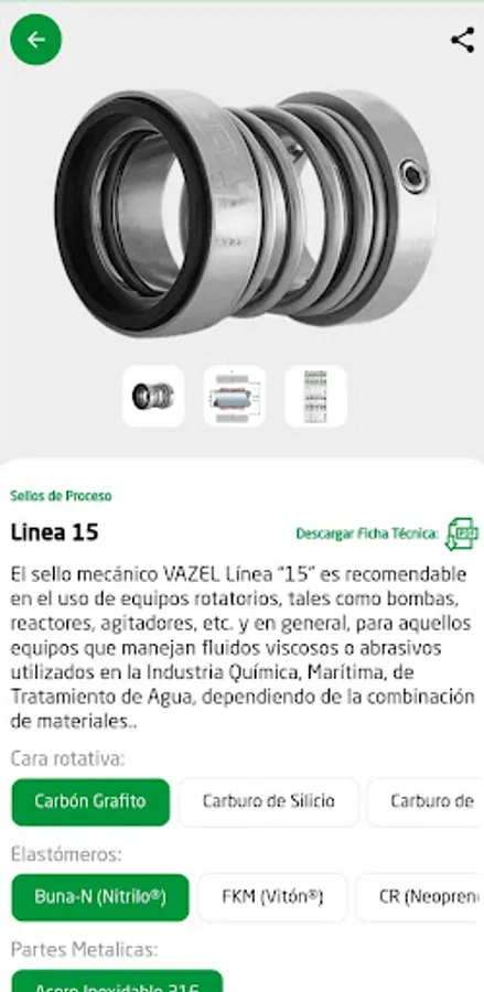 Application of Mechanical Seals of the company Vazel, contains information about our mechanical seals, technical sheets, option to make quotes and find the seal you need.
