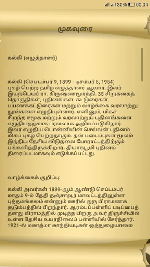 A beautiful Reading App with compilation of Kalki All Novels Collection in Tamil.