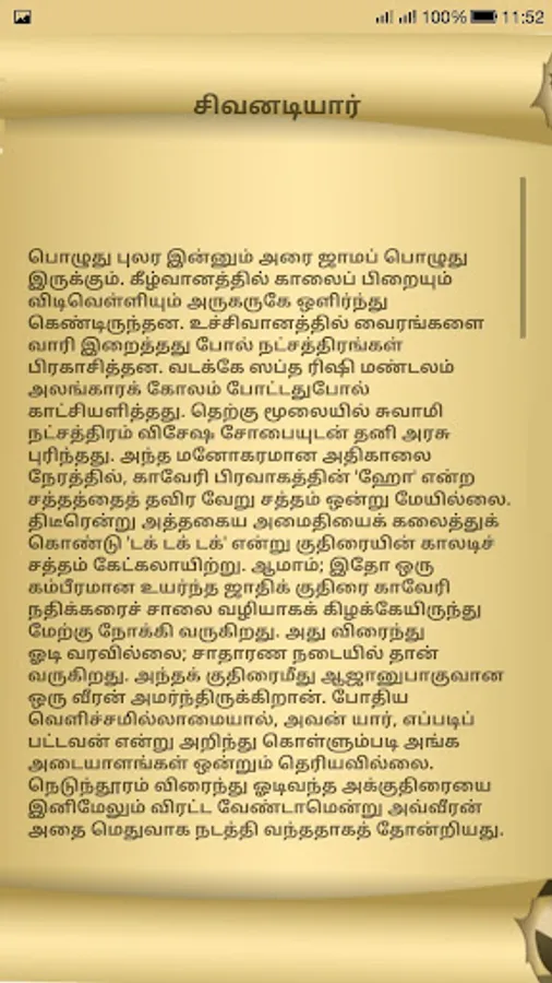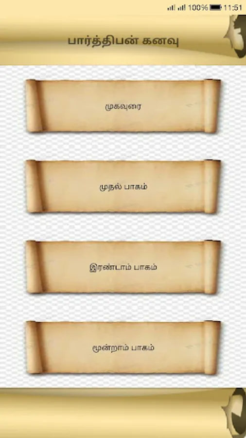 A beautiful Reading App with Complete Compilation of Parthiban Kanavu Novel in 3 Parts with an Introduction to Viewers in Tamil.