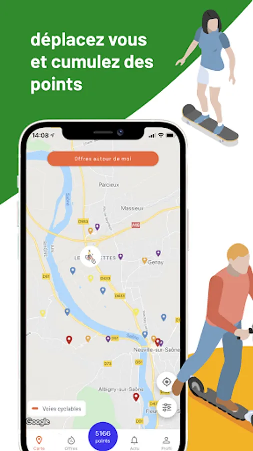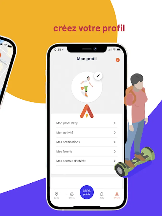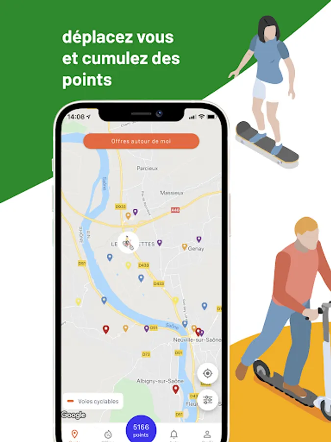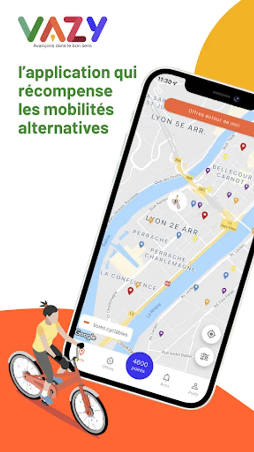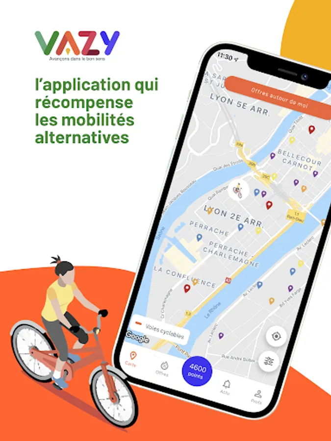 With VAZY, your carbon-free trips earn you points. These points give you access to the offers offered by the application's partners: shopkeepers, manager of a sports hall, a cultural space ... in the city center!