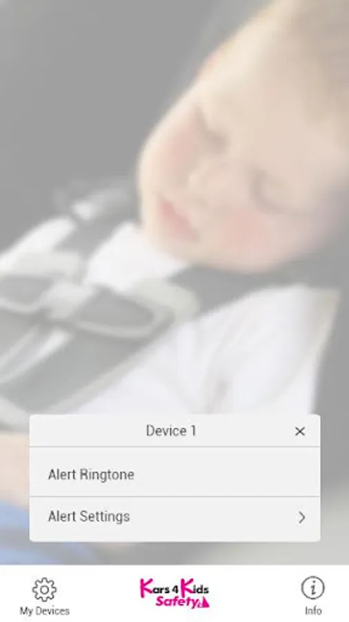 A necessary addition to every responsible parent's toolkit, the Kars4Kids Safety app gives parents the peace of mind of knowing that their child is safe in the backseat. As the Kars4Kids Safety App relies on Bluetooth technology, your vehicle will need to be equipped with Bluetooth for the app to function properly. After a one-time easy setup, the app syncs with your vehicle’s Bluetooth to sound an alert when you leave the car, reminding you to take your child along. Personalize the app with a picture of your child and a customized alert ringtone.