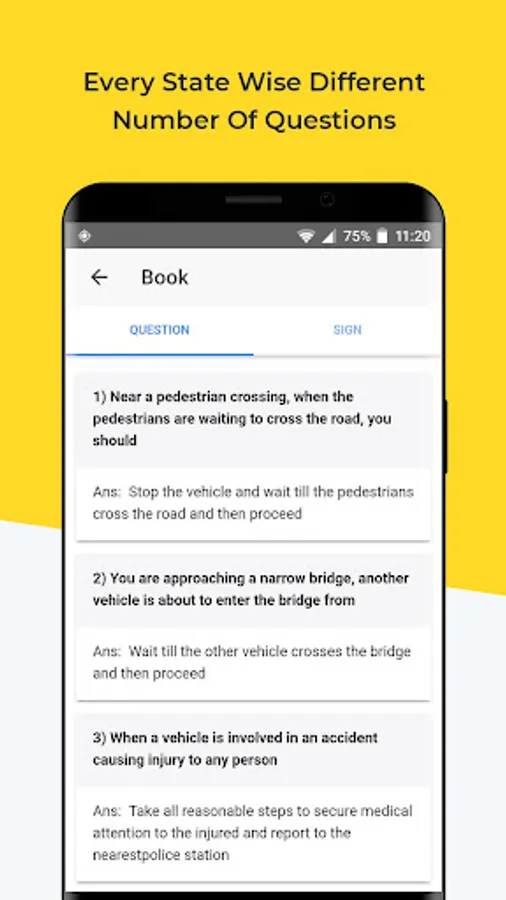 Questions & Answers: List of questions and their answers as provided by RTO (Regional Transport Office) department.