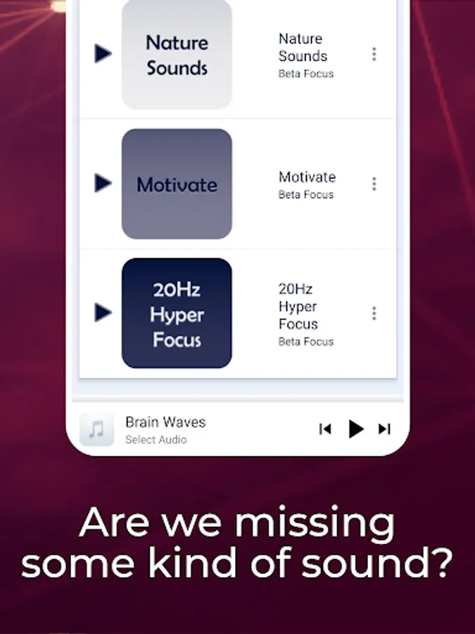 Are you missing some kind of sound?. Have you detected any issue with Brain Waves - Binaural Beats? Please contact us @ info@vbckyapps.com .