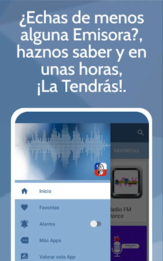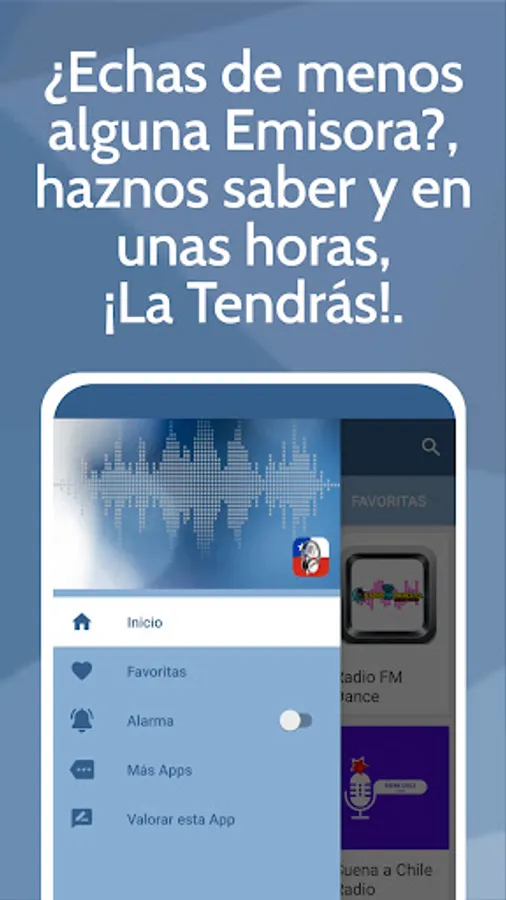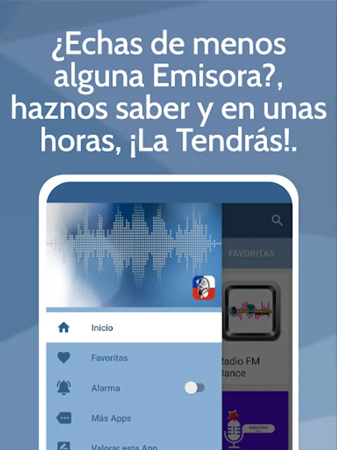 Do you miss any Radio Station in Chile App? Let us know and in a few hours, you will have it! Have you detected any problem with Radios de Chile App? Please write to info@vbckyapps.com.