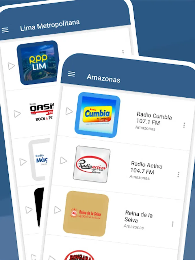 • Amazonas: Radio Cumbia 107.1 FM, Radio Activa 104.7 FM or Reina de la Selva.