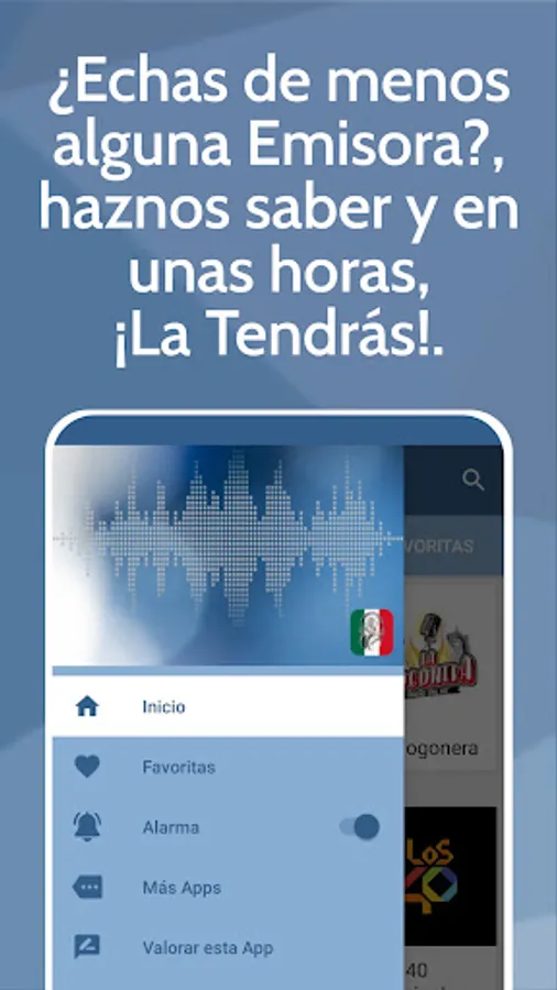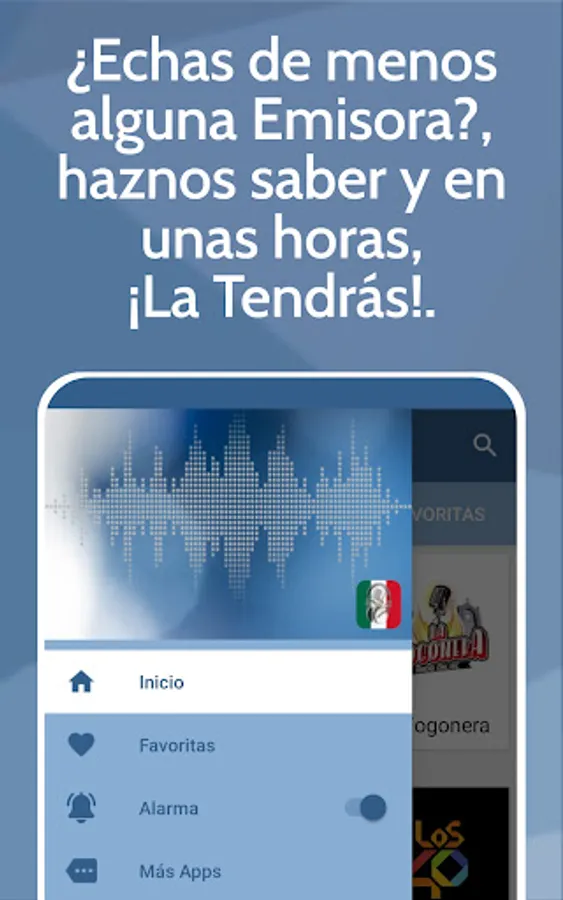 Do you miss any Radio Station in Mexico App? Let us know and in a few hours, you will have it! Have you detected any problem with Radios de México App? Please write to us at info@vbckyapps.com.