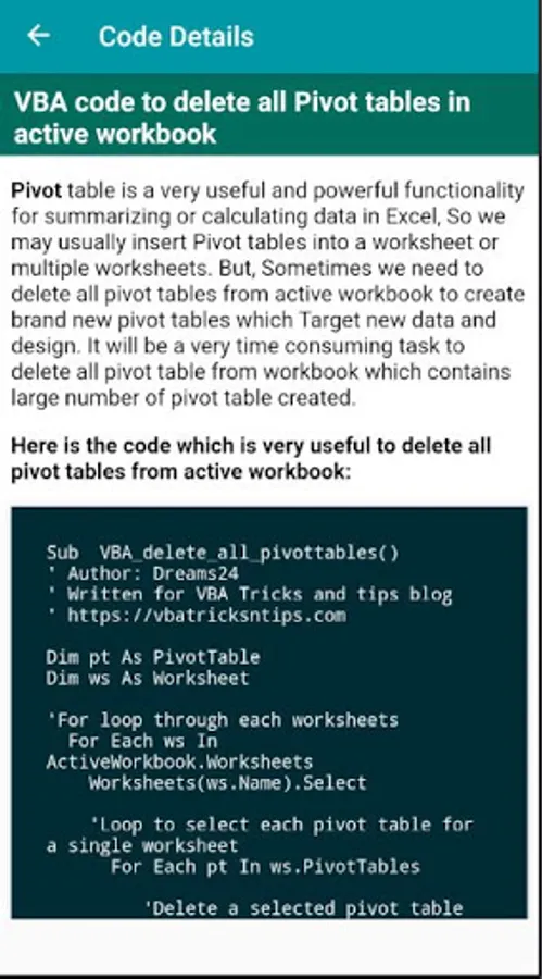 This app is designed in a such way that it will provide very useful information on challenging VBA codes. These code will be so useful to create complex macros and utilities in Excel. All VBA codes demonstrated here equipped with best practices and current best approaches. These optimized codes can used by anyone to implement their automation in very short span of time. This app is very useful for below individuals: