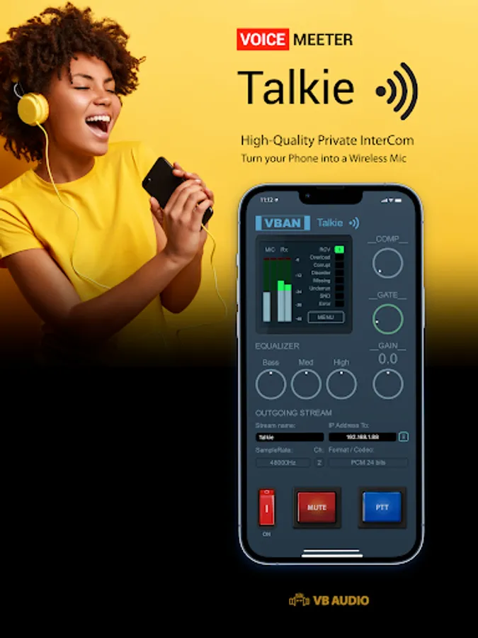 VB-AUDIO Software / VBAN-Talkie allows to send your voice (Audio Input) to any VBAN Receptor and in the mean time, listen to a VBAN Streams, turning your mobile device in High Quality Wireless Microphone or Headset. Typically connected to Voicemeeter, the VBAN Talkie will offer outstanding local network intercom functions...