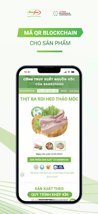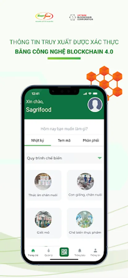 Traceability of products on the Blockchain platform - TXNG Sagrifood is an application that supports the Traceability of Sagrifood products on the Blockchain technology platform to help transparent the entire value chain information of the Company's goods supply. Livestock & Food Processing Saigon (Sagrifood). The Sagrifood Traceability System is designed to comply with GS1 standards, traceability standards TCVN 12827:2019 and TCVN 12850:2019.