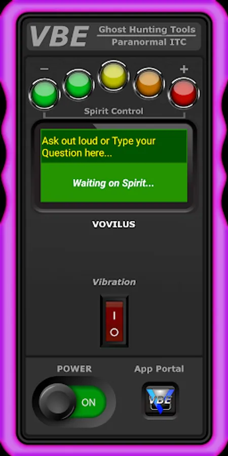 4) VOVILUS: The Vovilus was Designed after the Ovilus. The Difference is huge. Our app allows the Spirit to scroll through the words and select the word they choose to answer with. The spirit can use both EMF and Vibration to select words. EMF controls the speed while a vibration will select one at a time.