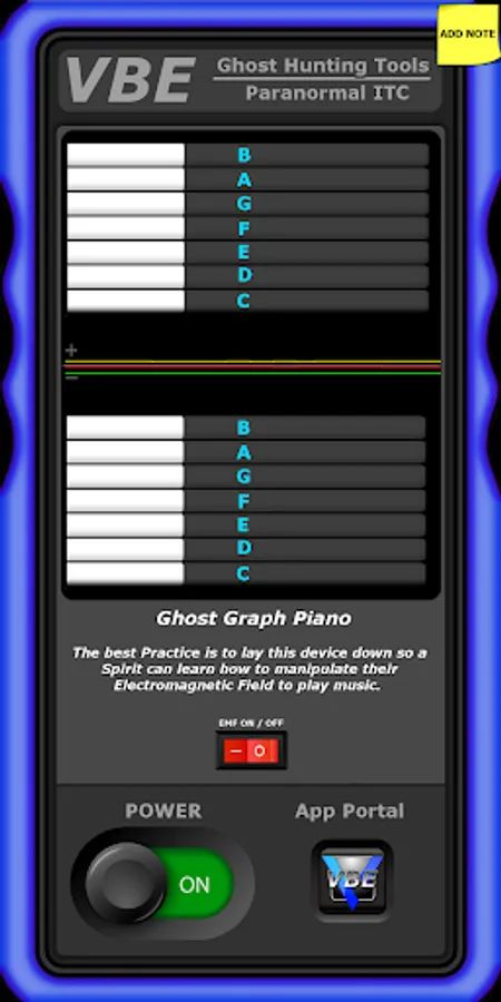3) V-POD: This app is Designed after the REM POD. While our app does not go off by you simply touching your device. It can if you Vibrate your device with the Vibration ( Added ) feature on. However, it's main purpose is to Detect different Levels of EMF and create an Audible Tone like the REM POD. It can be used to answer Questions by the various Colors and can be used like a Security alarm. Simply set it up and walk away. If you hear the Variable tones. That means EMF has been Detected. If you Hear beeps, that is the Vibration feature detecting Vibrations.