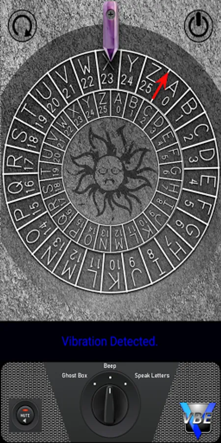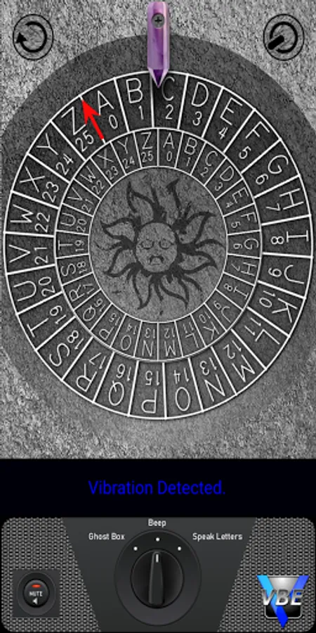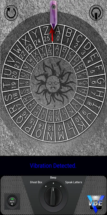 RIGHT = Spoken Letters. Basically, when a spirit rotates the wheel ( COMPASS ) to the letter they want. You will here the Letter spoken when Vibration is detected.