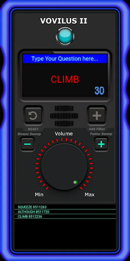 Unlike other applications, with Hidden words and random selections. ALL Words are shown to you and the Spirit. This means, an Intelligent Selection must be made to your Question in order to Verify the presence of an Intelligent Being.