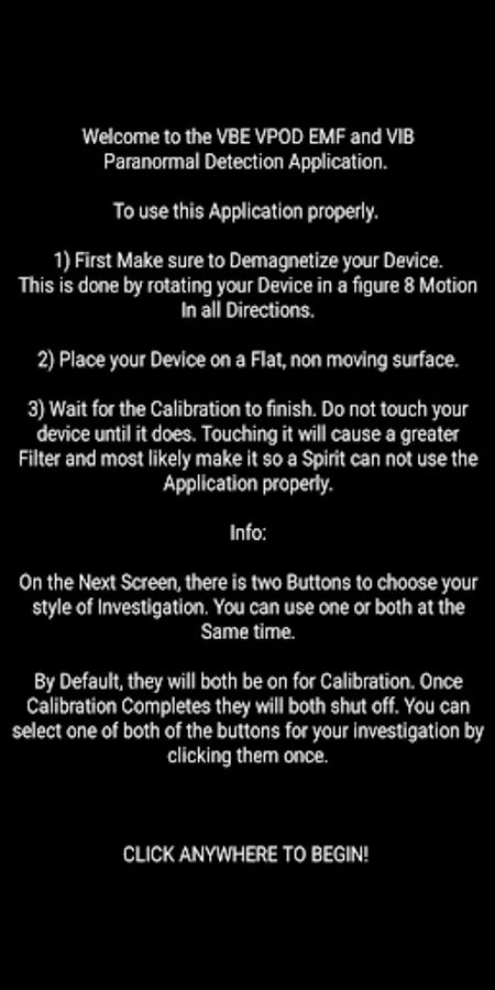 All information is provided in USE. This means when the app starts, it shows the Directions on Screen. Please follow these directions as we at VBE are not responsible for improper use.