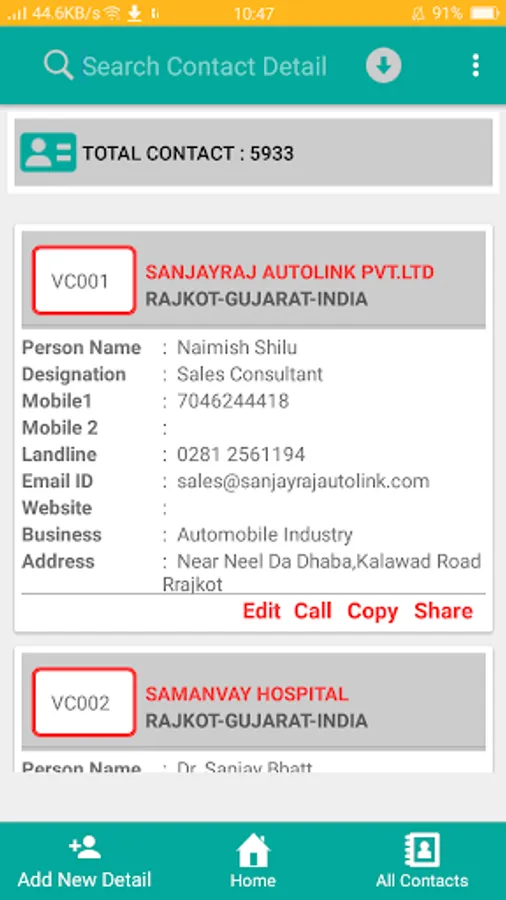 - Search by Company, Person Name,Mobile Number,Email,City.