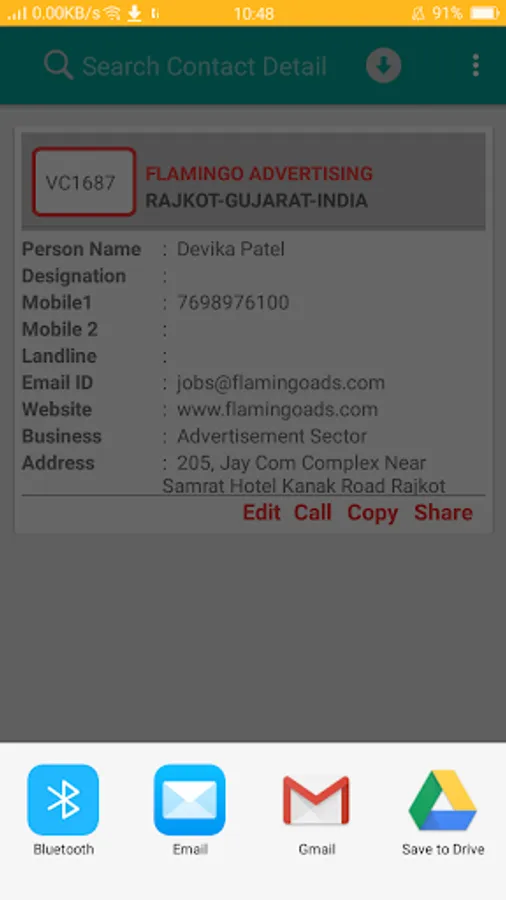 Add all your Detail of business cards in the app "V-Card" just Add detail of business card.