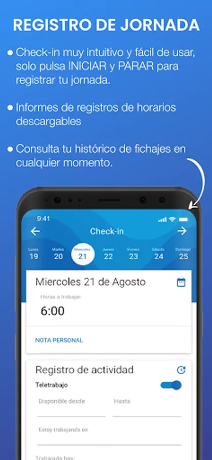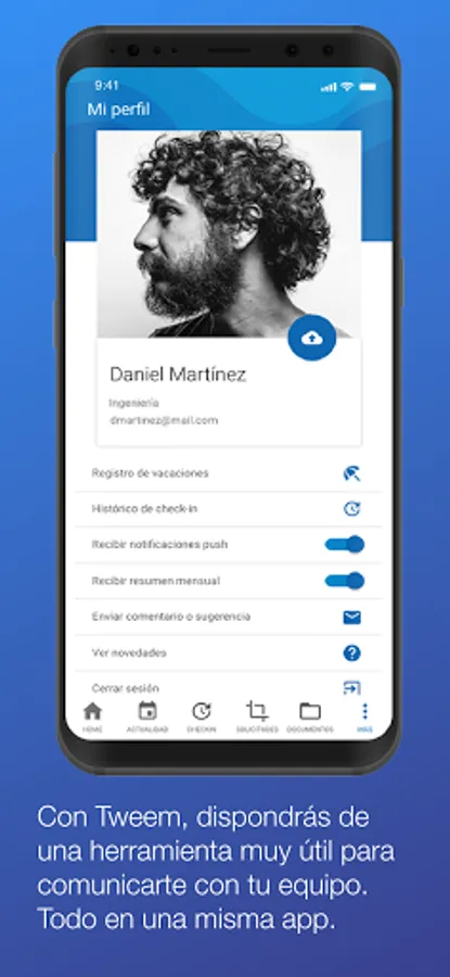 With tweem you can not only record your workday, but also manage your calendar, activities, overtime and everything you may need to organize your work.