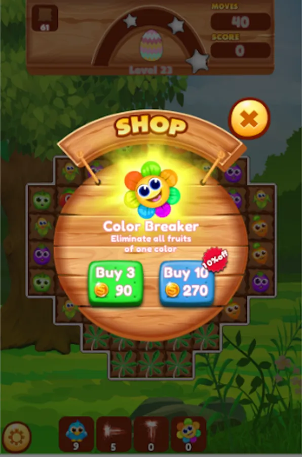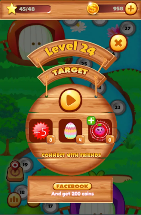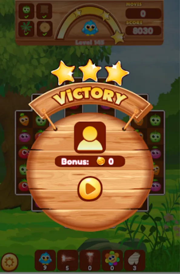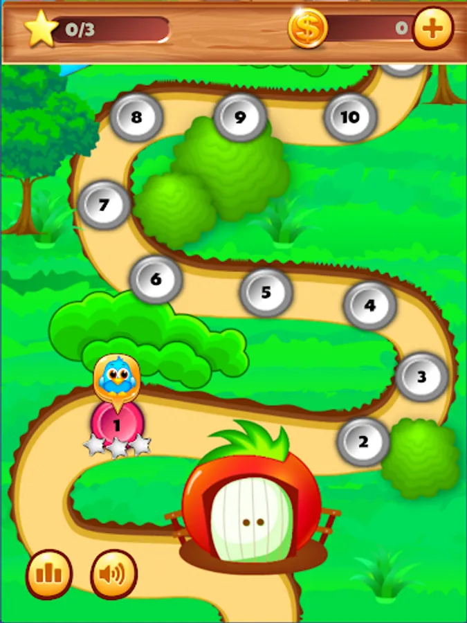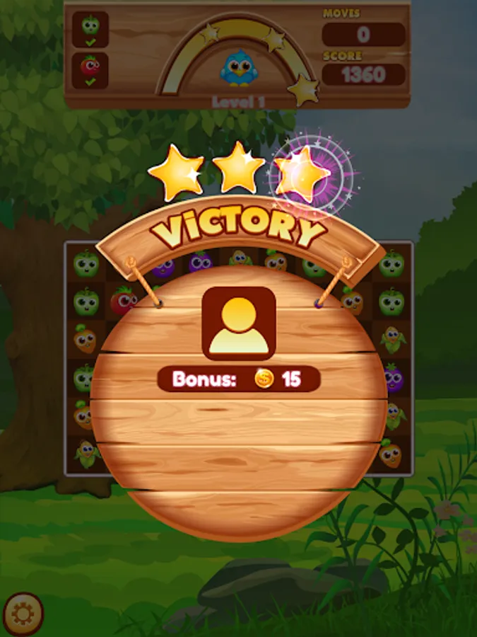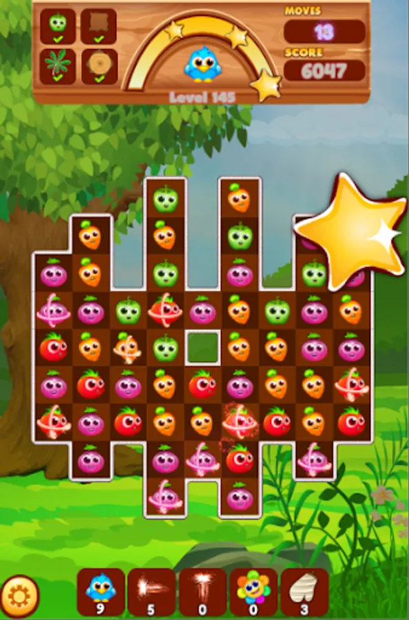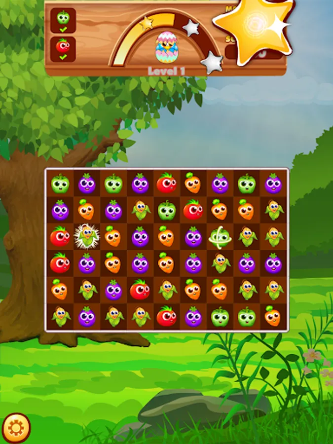 You can get up to 3 stars on every level. To make the Veggies Splash more fun, make matches of 4 or 5 to launch new powerful explosion sunflower: boom, get score in horizontal or vertical line, score all Veggies with the same color.