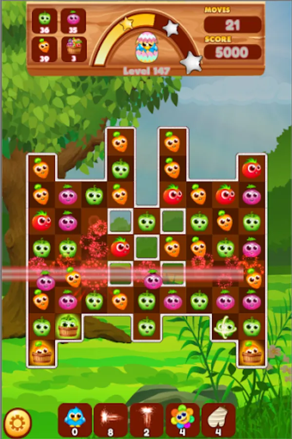 ● Collect all kinds of Veggies to win the level before you run out of moves.