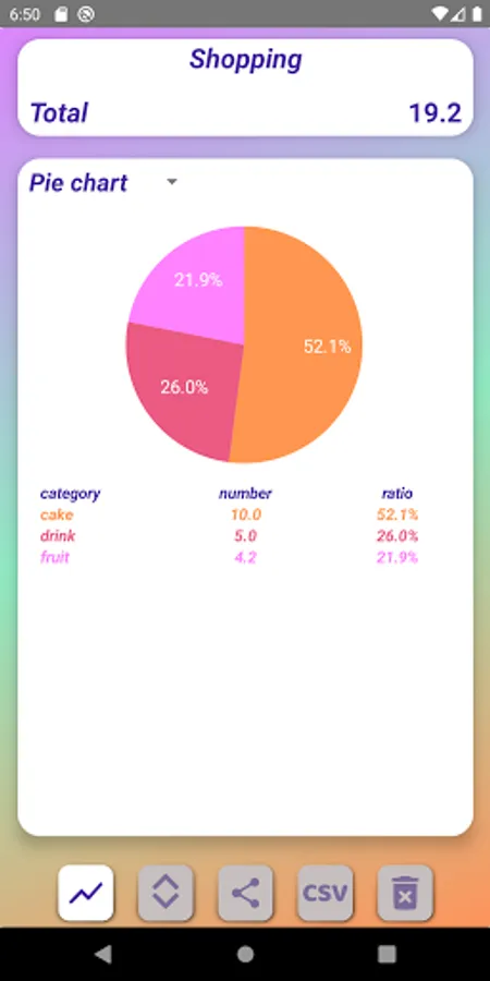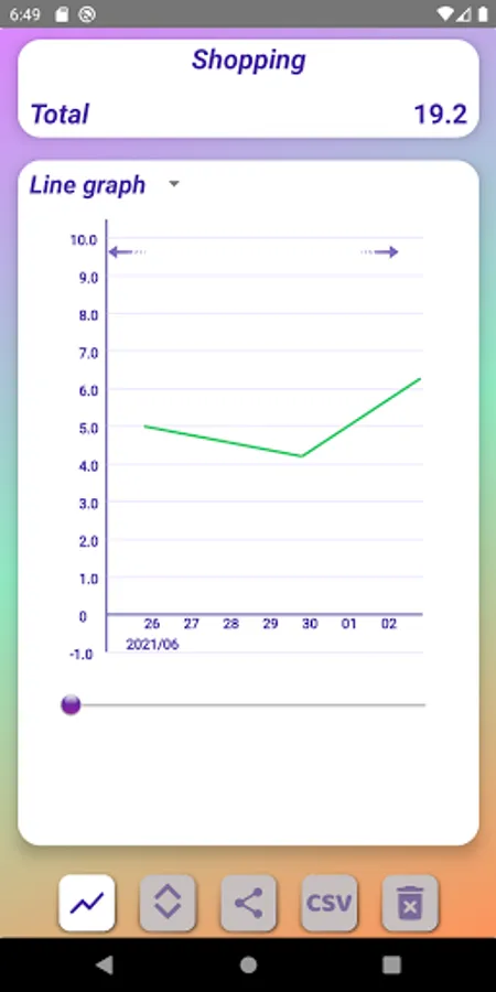The entered values can be displayed as a line graph or pie chart.