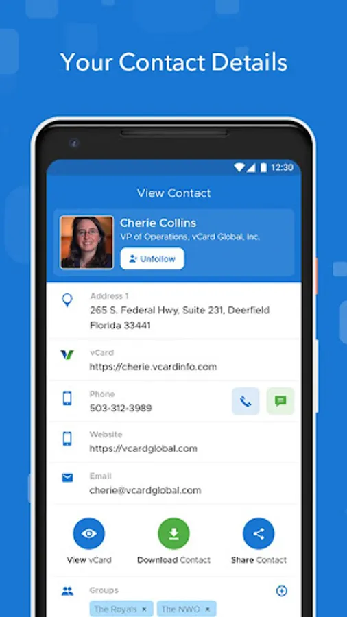 Contact Information (phone numbers, email, address) for your Contacts are automatically updated and kept current.