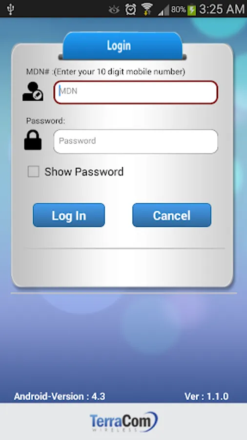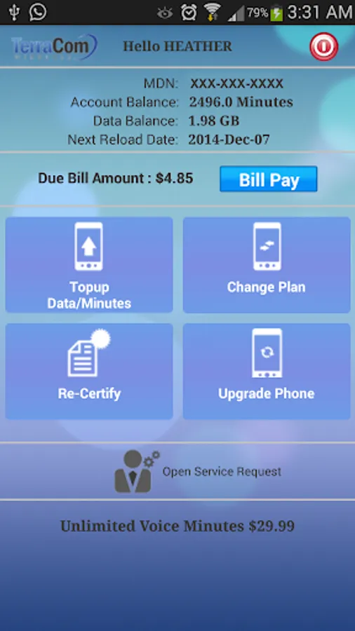 This app is designed specifically for TerraCom Wireless subscribers ONLY. The app allows you to check your minute balance, view your current invoice, pay your bill, open a service request or complete annual re-certification. Using this APP, you can also buy new equipment from the various range of handsets we have available to offer to you.