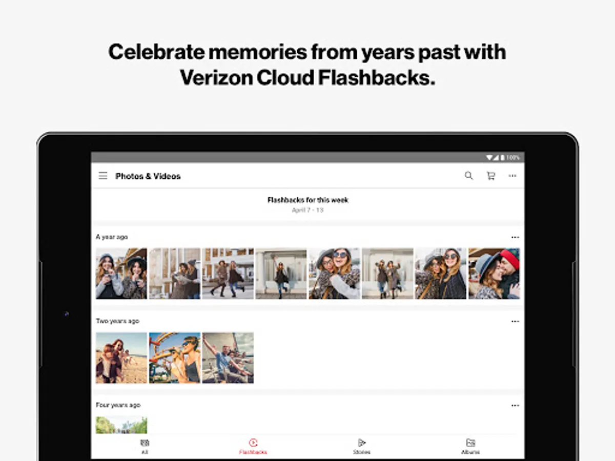 Relive your memories with weekly photo and video Flashbacks and Stories.