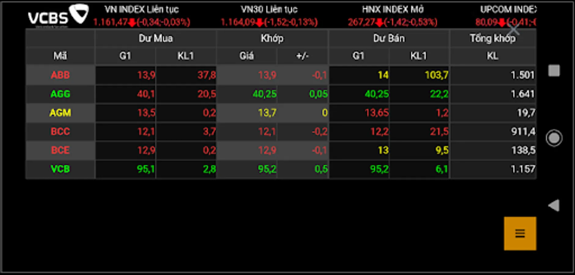 VCBS Mobile responds to all securities transactions of customers anytime, anywhere, simply and quickly such as: