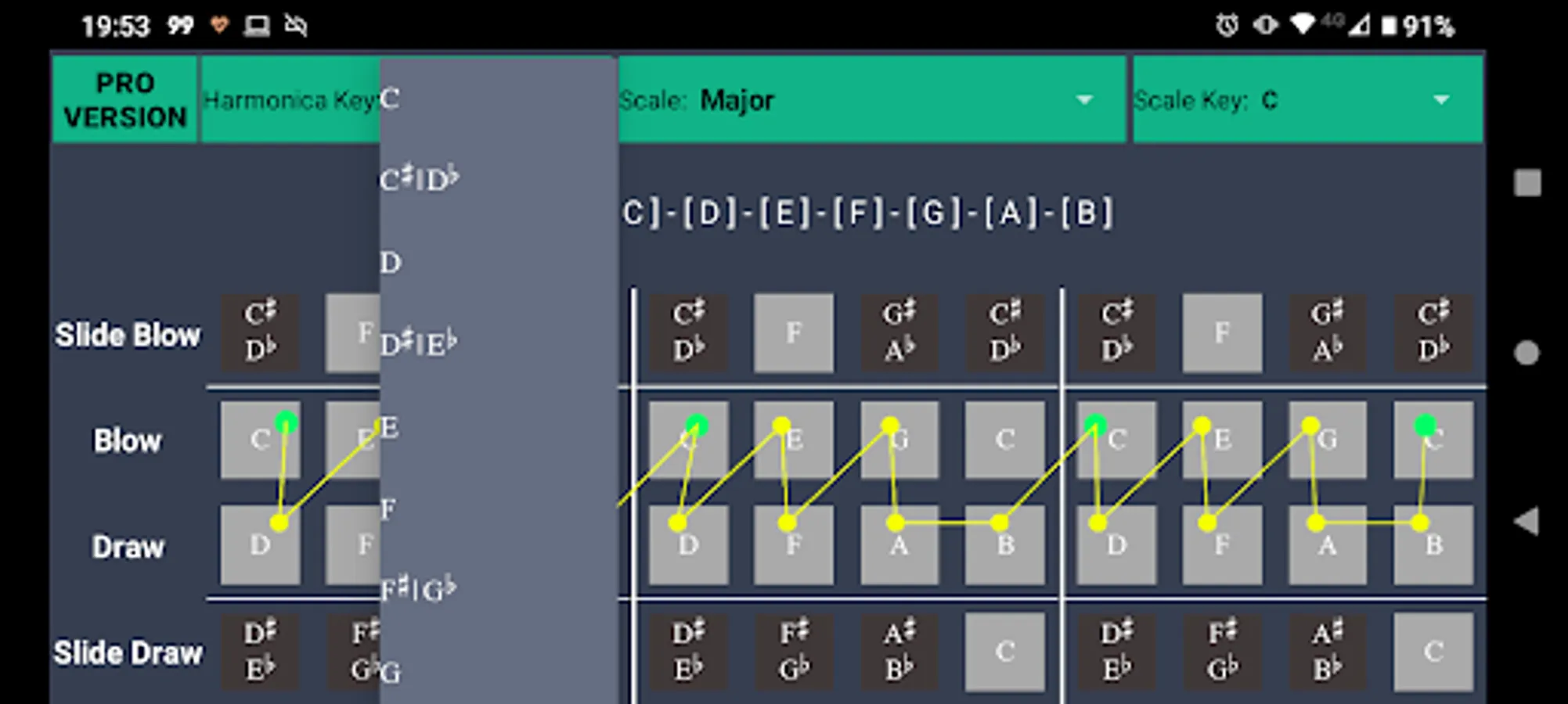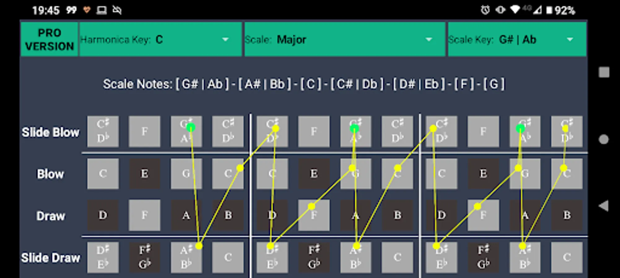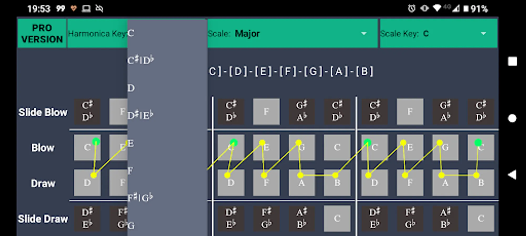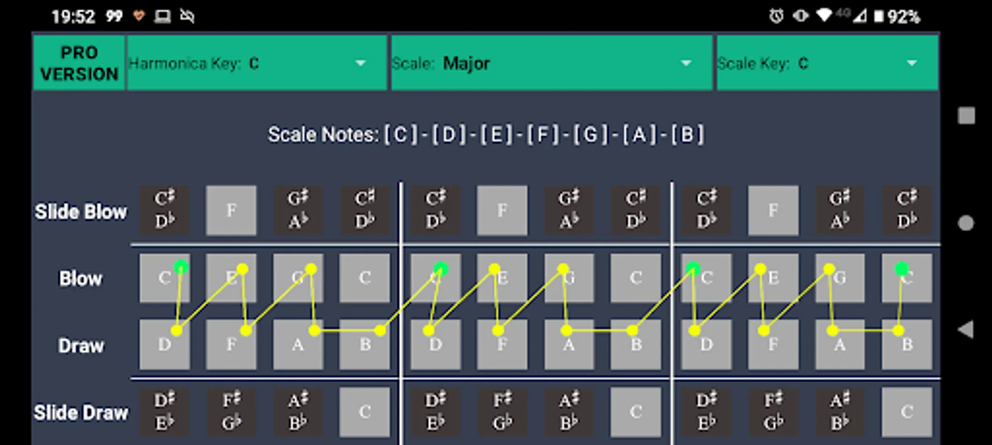 Free Version includes: 3 Harmonica Keys (C, G, Bb), Some Scales (Major, Minor Natural and Pentatonics), Scale Keys (C, C#, D, G) and also include ADs.