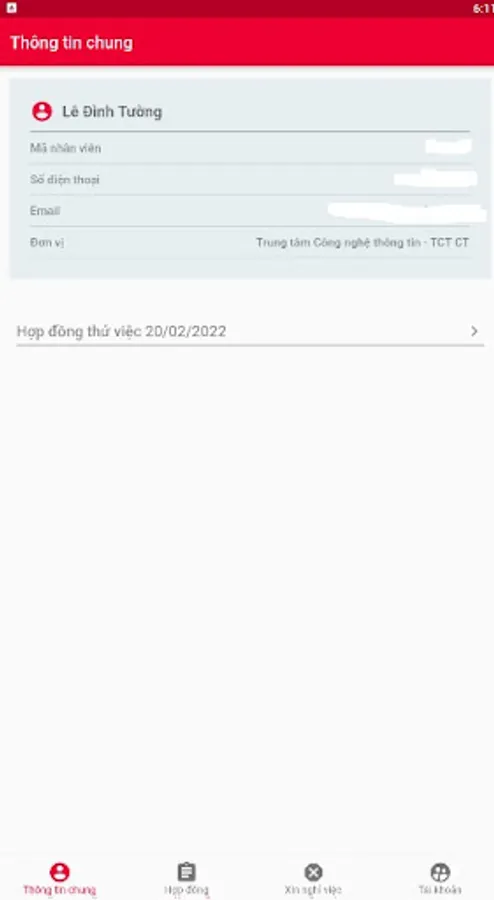 Electronic file is a mobile application built and developed by Viettel Construction Corporation. Software used for internal administration of TCT, helping employees to sign electronic contracts and storing employees' contracts