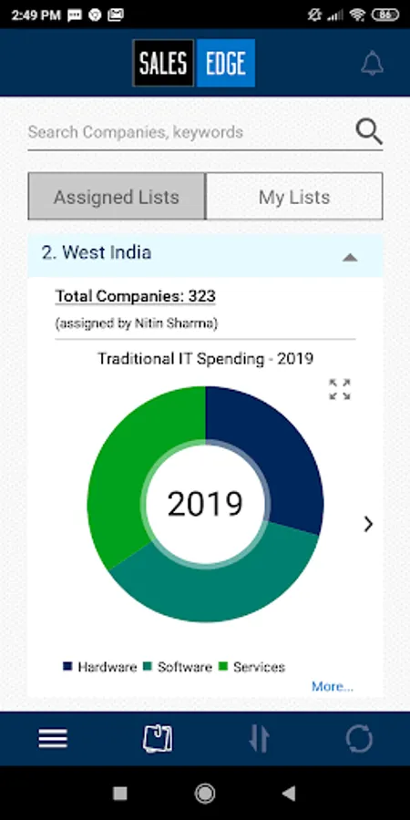 SalesEdge - India’s first Growth Intelligence Platform aims at automation of Sales Strategy and Operations by enabling businesses to: Define their market, empower their overall strategy, create informed messaging and discover opportunities. It captures financials, digital(IT) spends, demographics, industry movements of 48.5K BFSI, Manufacturing and Healthcare companies contributing a total of $39bn in IT spending for 2019.