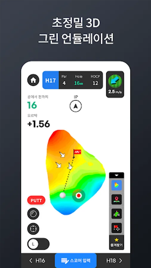 ● Provides distance information by reflecting the distance to the pin and the course elevation difference