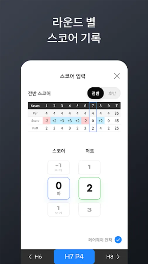 ● Provides round analysis data such as fairway landing rate and green hit rate