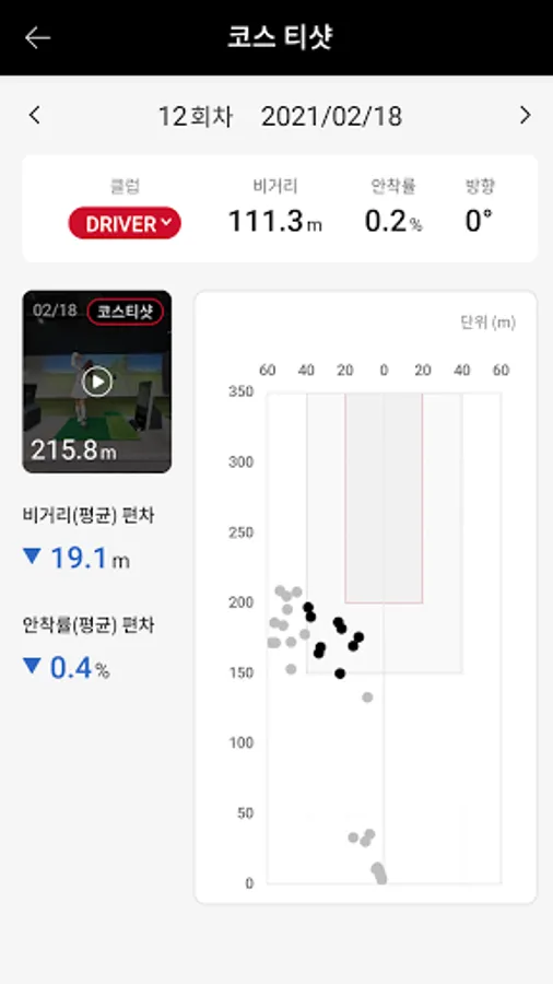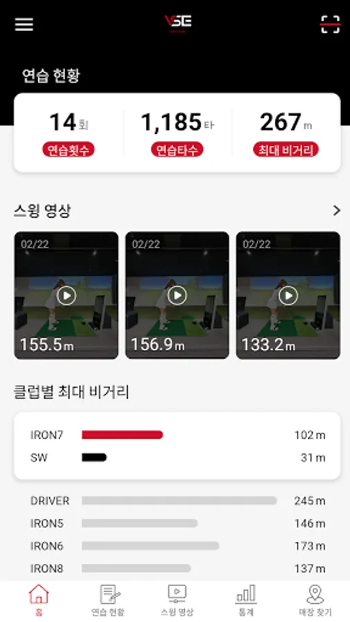 -Practice count, practice strokes, maximum flying distance, practice status by mode, swing video can be checked