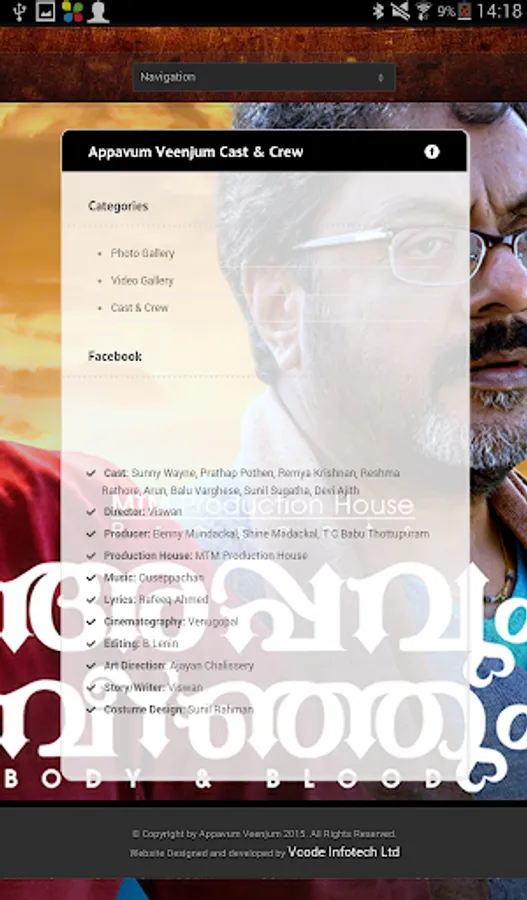 Appavum Veenjum is an upcoming 2015 Malayalam romantic musical thriller film, written and directed by Viswan. The film stars Sunny Wayne, Ramya Krishnan and Pratap Pothen in leading roles. The soundtrack and film score were composed by Ouseppachan for the lyrics of Rafeeq Ahammed. Sunny Wayne does the role of a musician from Goa. The film was shot in Vagamon and Kuttikanam in Idukki district. The film is all set to release in June 12 2015.