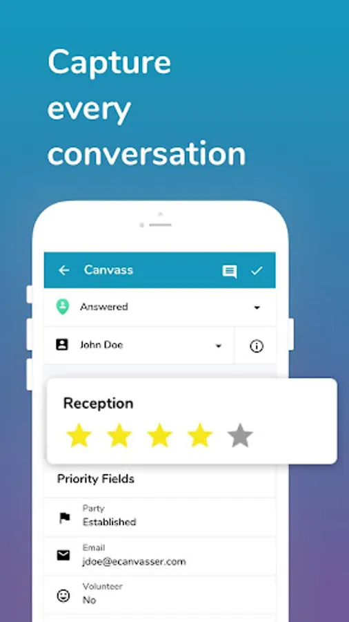 Ecanvasser is a non-partisan software company and not affiliated, partnered nor contracted by any government. The app is used globally across and not restricted to any state or country. All information is the app is provided by users and is only shared and viewable with trusted members of their team.