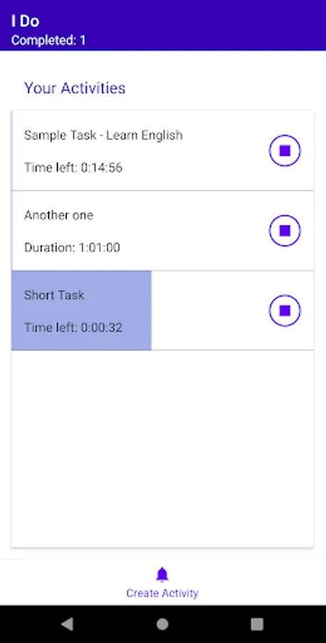With this app you can create different activities with you desired duration and get notified when the task time is over. This helps to perform every day exercises like small portions.