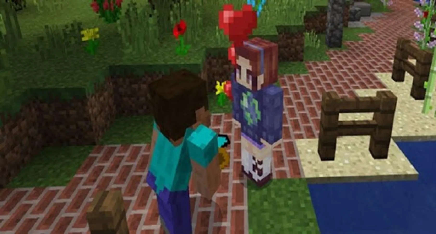 Fashion My Girlfriend Mod replaces residents in MCPE by women. And if you have a diamond, then you can offer one of them to marry you. Now you will not be alone. Girls can be found in the villages, as this mod replaces the inhabitants. Then go to one of them and ask her to marry you. You will need a diamond ring (it's just an ordinary diamond) to offer her a hand and heart. If she accepts the offer, you will see the particles of hearts on the screen.